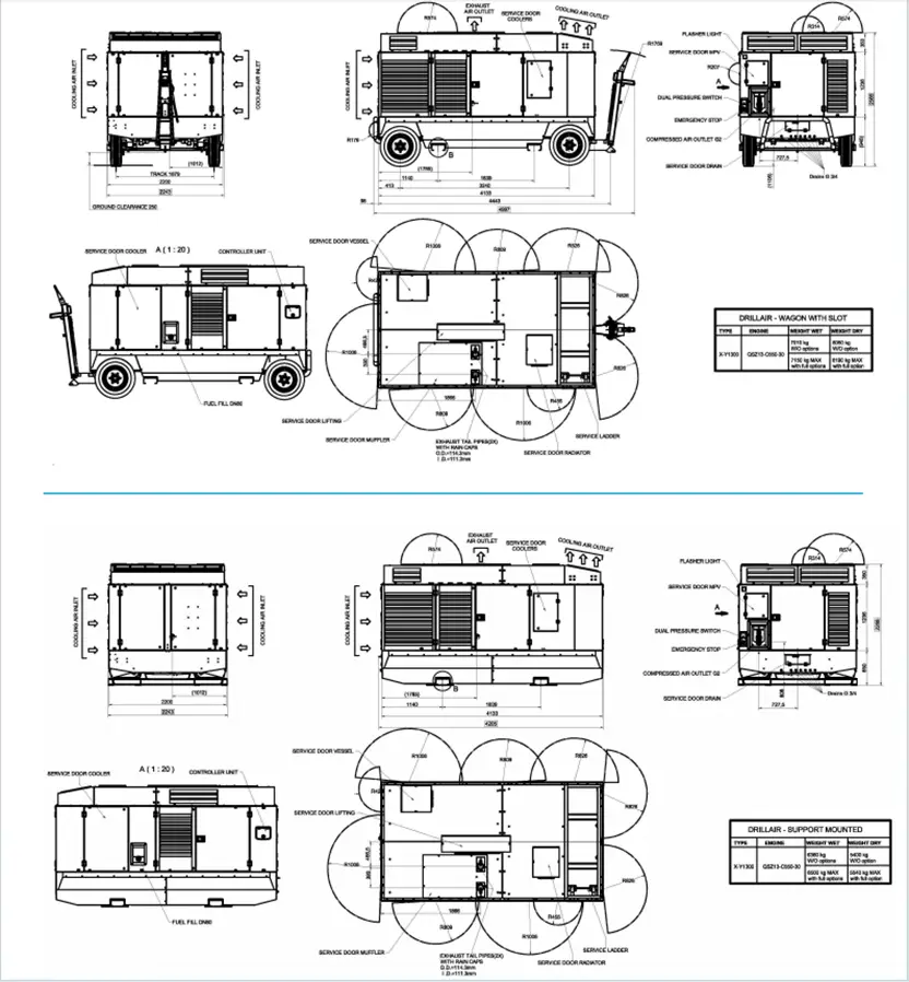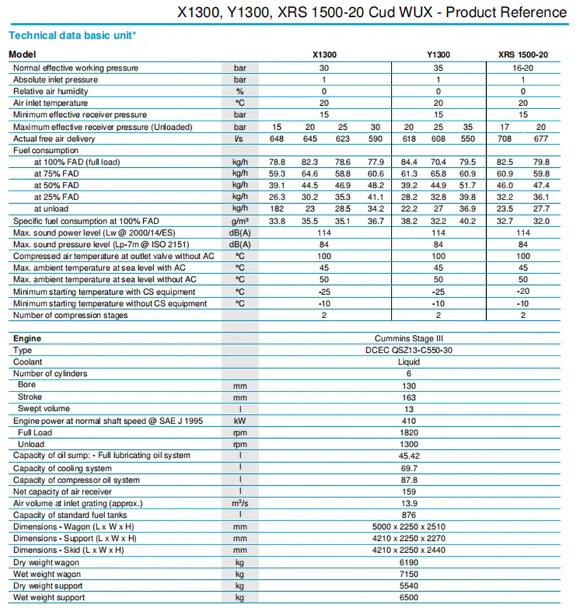 Atlas Copco X1300, Y1300 og XRS 1500-20 er lydløse, totrinns, oljeinjiserte skruekompressorer, drevet av væskekjølt, sekssylindret Cummins dieselmotor.