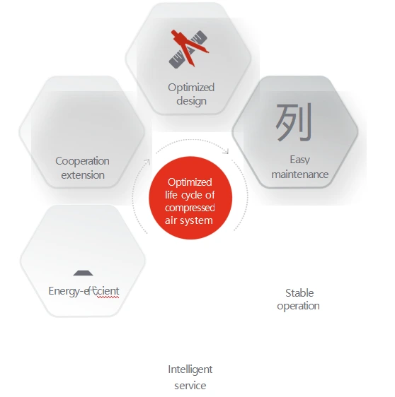Vårt oljefrie skrueluftkompressorsystem er spesielt utviklet for å fungere ved 46°C, som er overlegent de fleste design som kun er egnet ved 40°C.