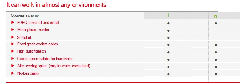 Våre kompressorer tilbyr kjølevæsker av matkvalitet, høy støvfiltrering og hardvannskjølere og andre alternativer tilpasset tøffe miljøer, som kan dekke dine behov for flere bruksområder.