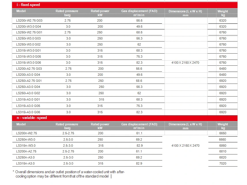 LS-serien lavtrykk oljefri skrueluftkompressor 200-315kW